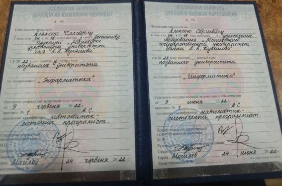 Окончил в 2022 году Могилёвский государственный университет имени Аркадия Кулешова (специальность "Информатика").